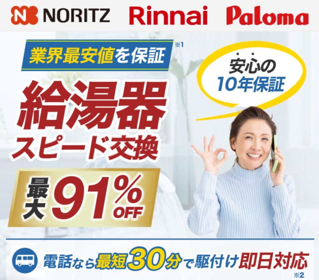 おすすめ給湯器業者給湯器駆けつけ隊交換パラダイスチカラもち