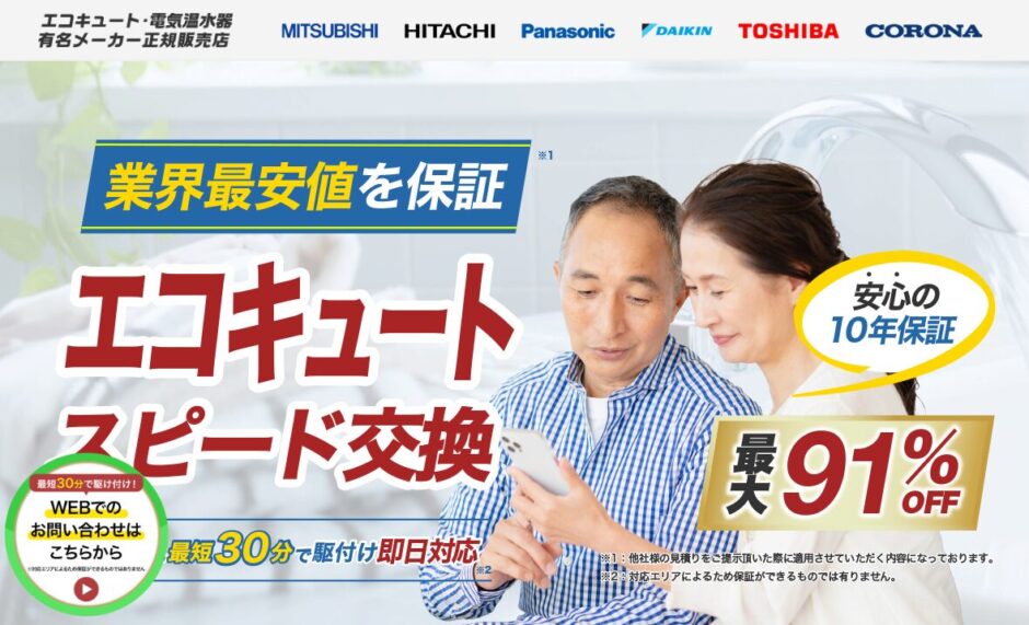 ⇒給湯器駆けつけ隊(ミズテック)を詳しく解説した記事はこちら